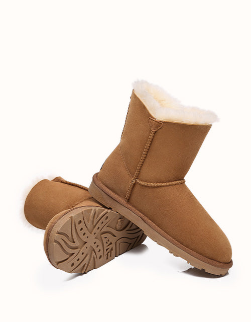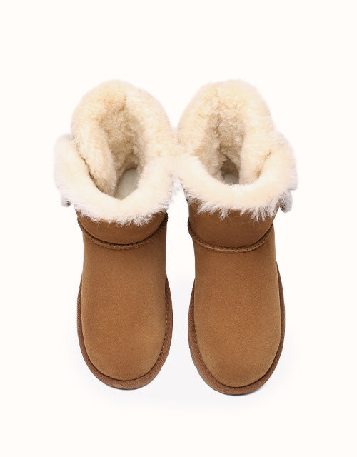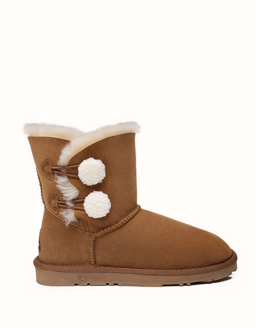 Want to get a pair of UGthtG boots with a bit of a twist? The Mini Button Boots Aspen is designed with Double-Faced Sheepskin and plush buttons, giving you the ultimate comfort while also making you look fashionably cute!