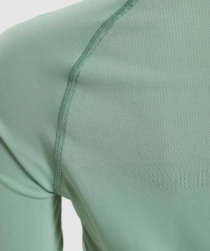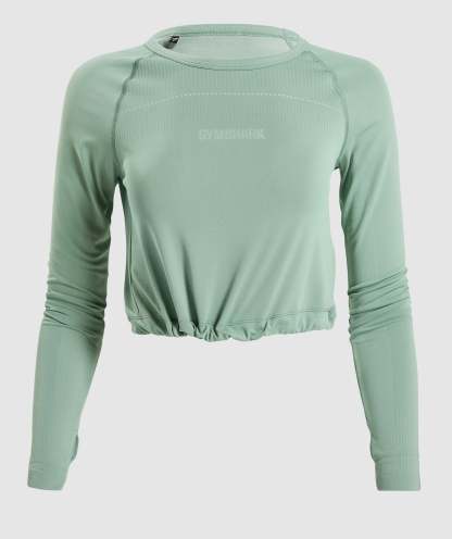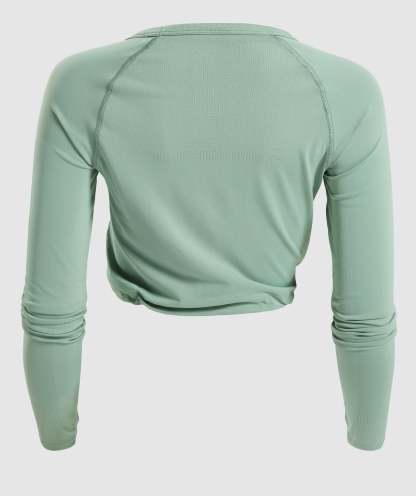 Gymthtshark Womens Breeze Lightweight Seamless Long Sleeve Crop Top - Green