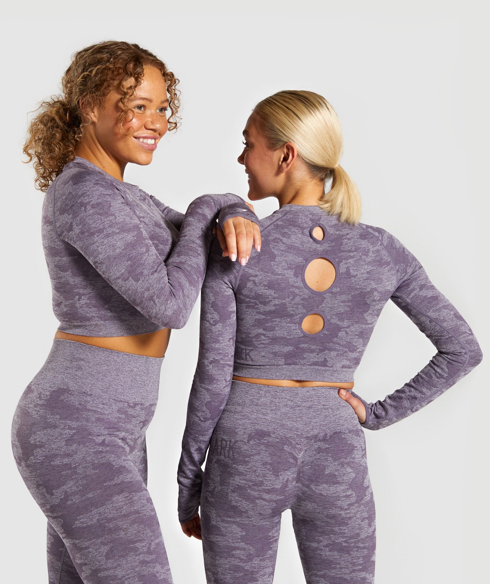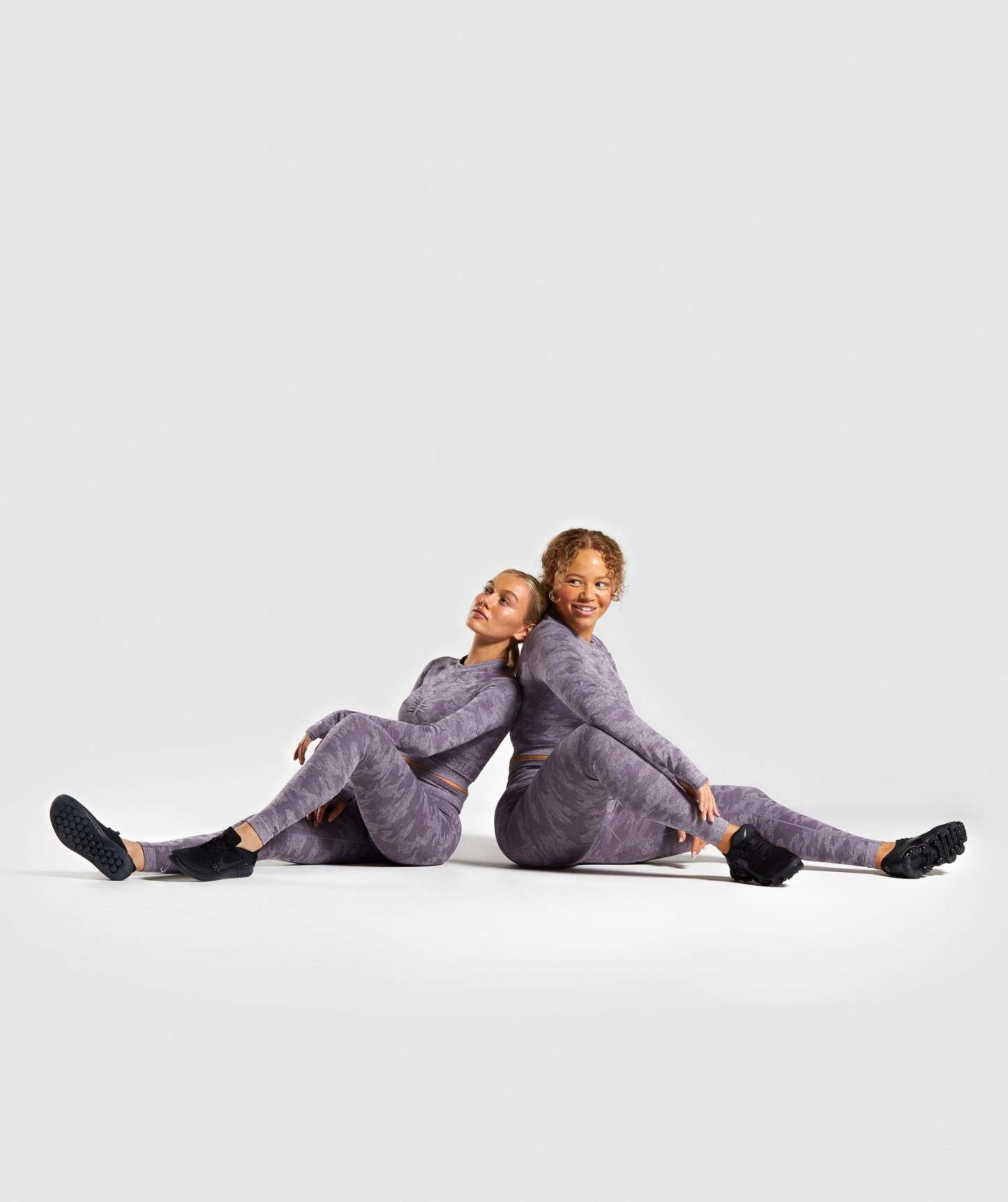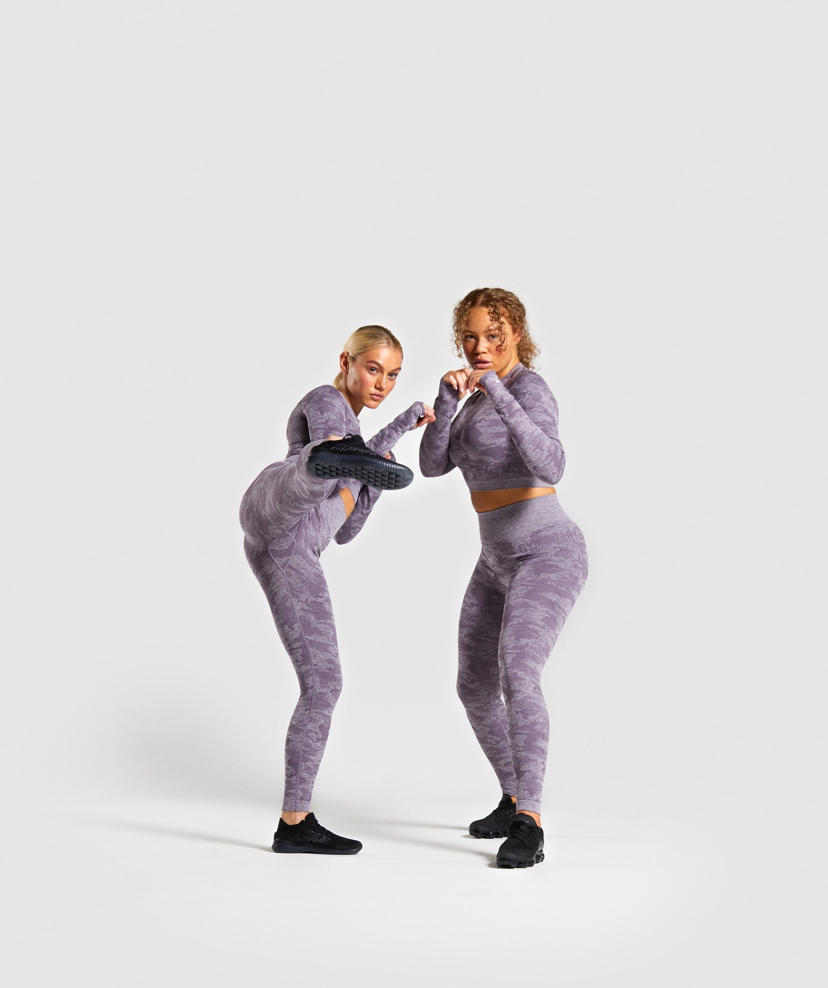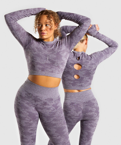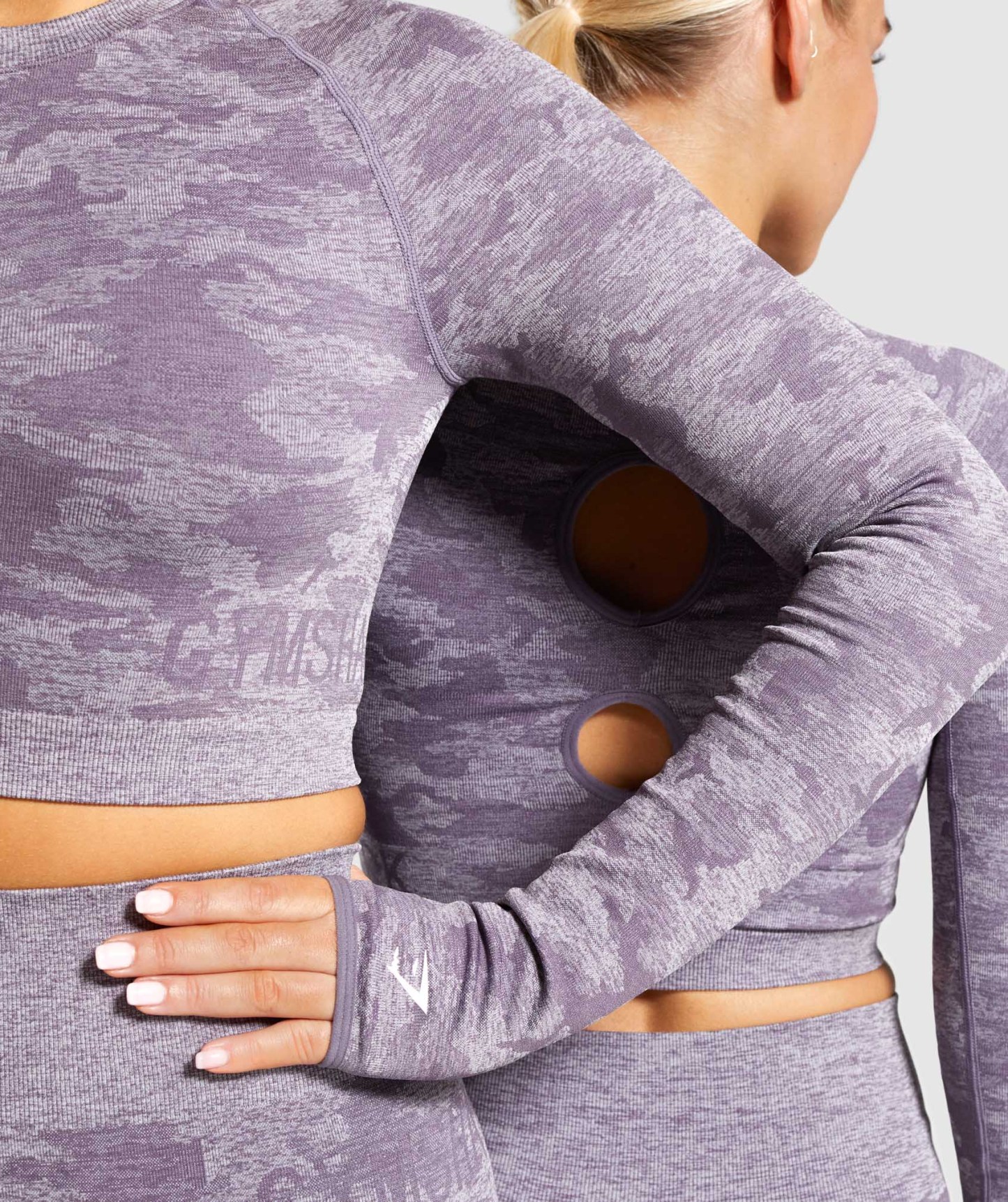 Gymthtshark Womens Camo Seamless Long Sleeve Crop Top - Lavender Grey