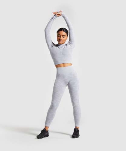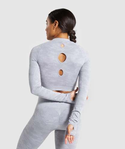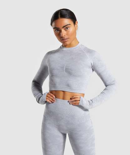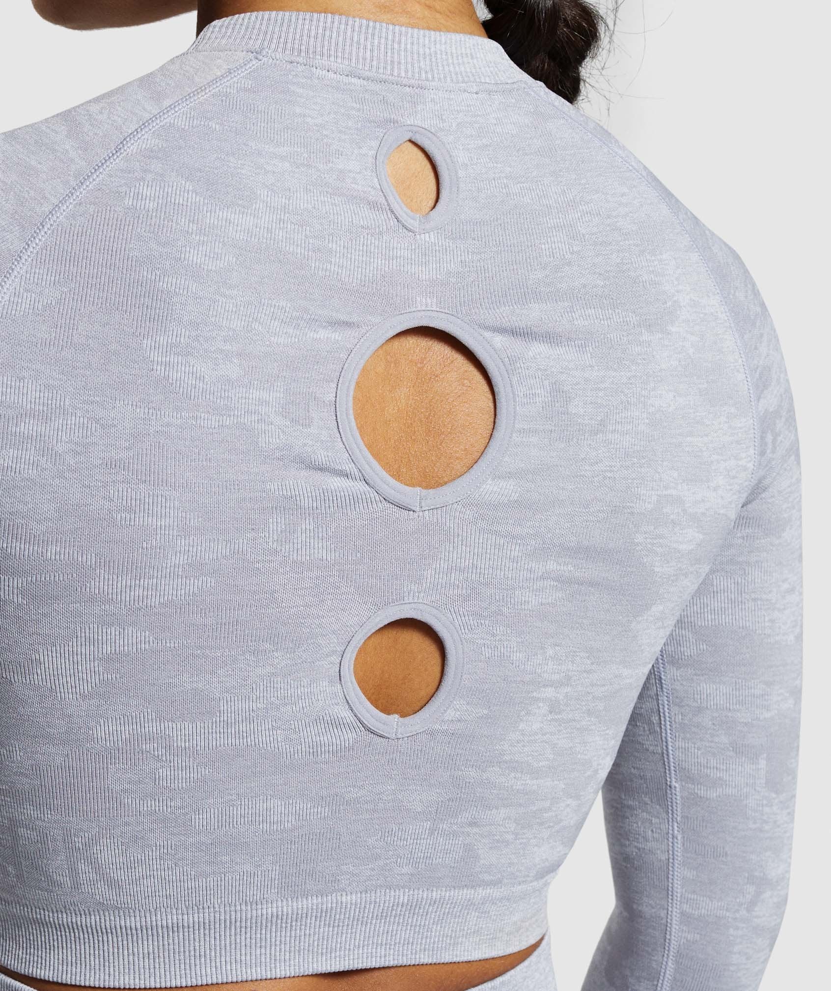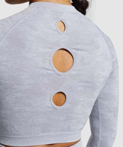 Gymthtshark Womens Camo Seamless Long Sleeve Crop Top - Lilac