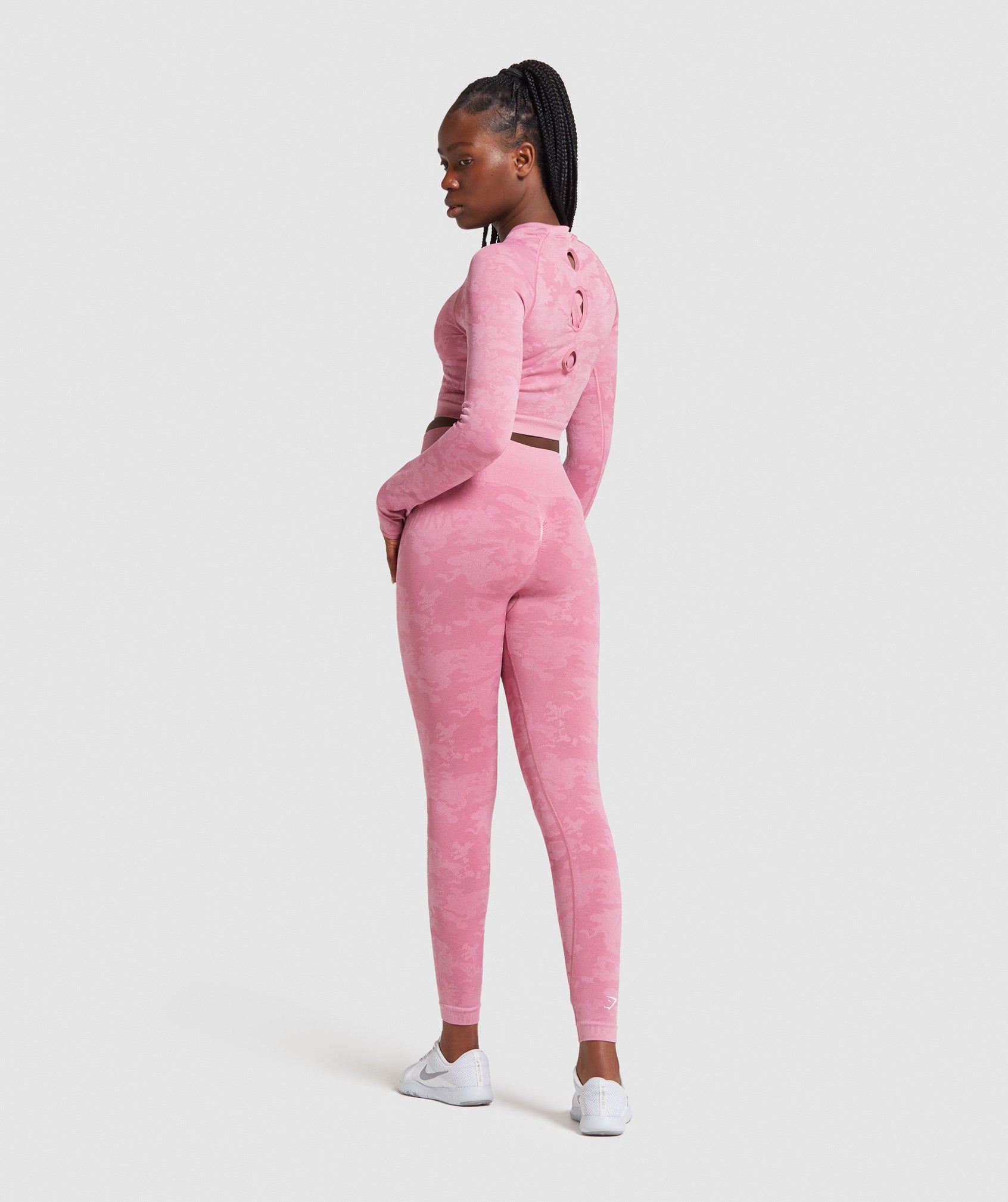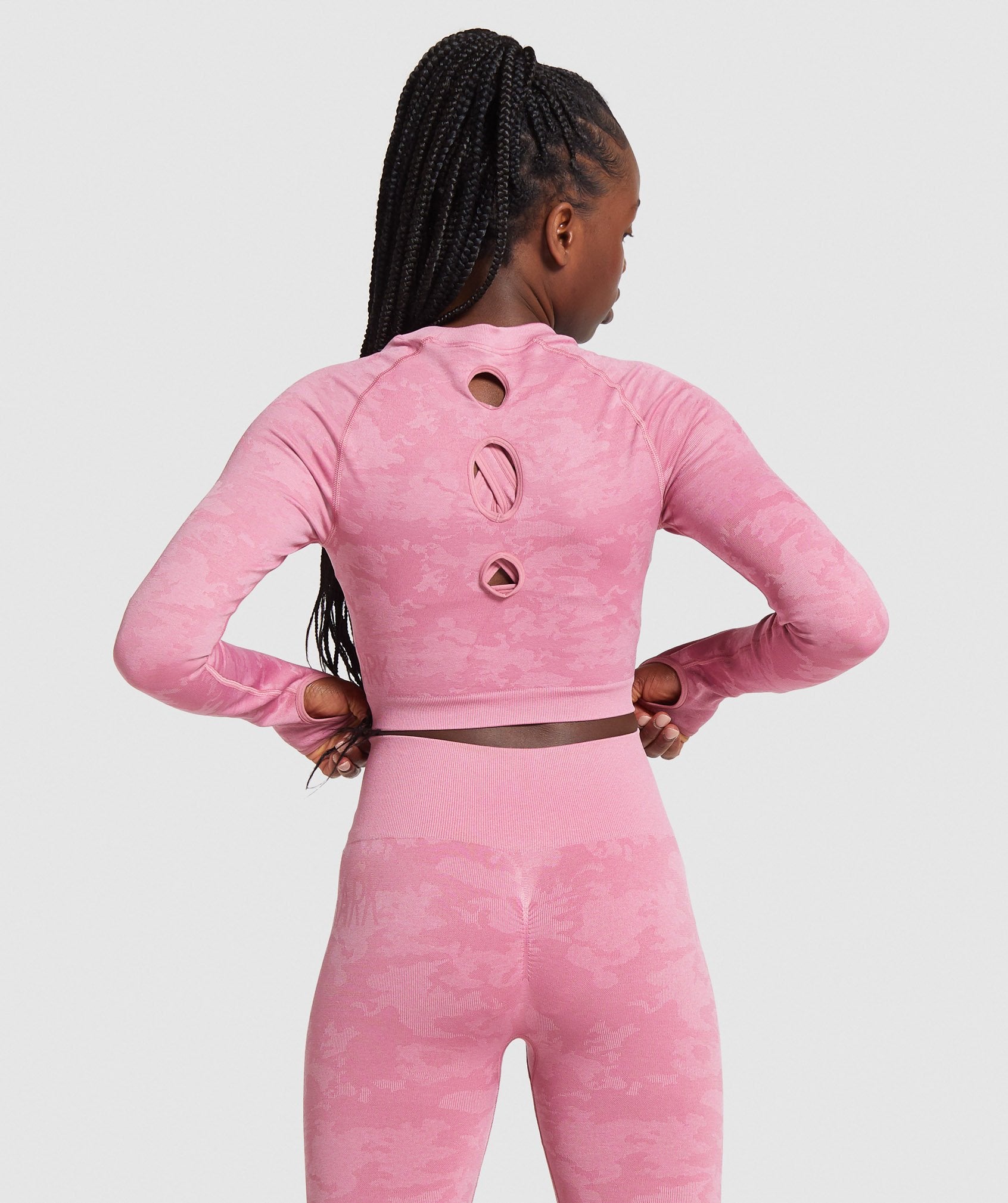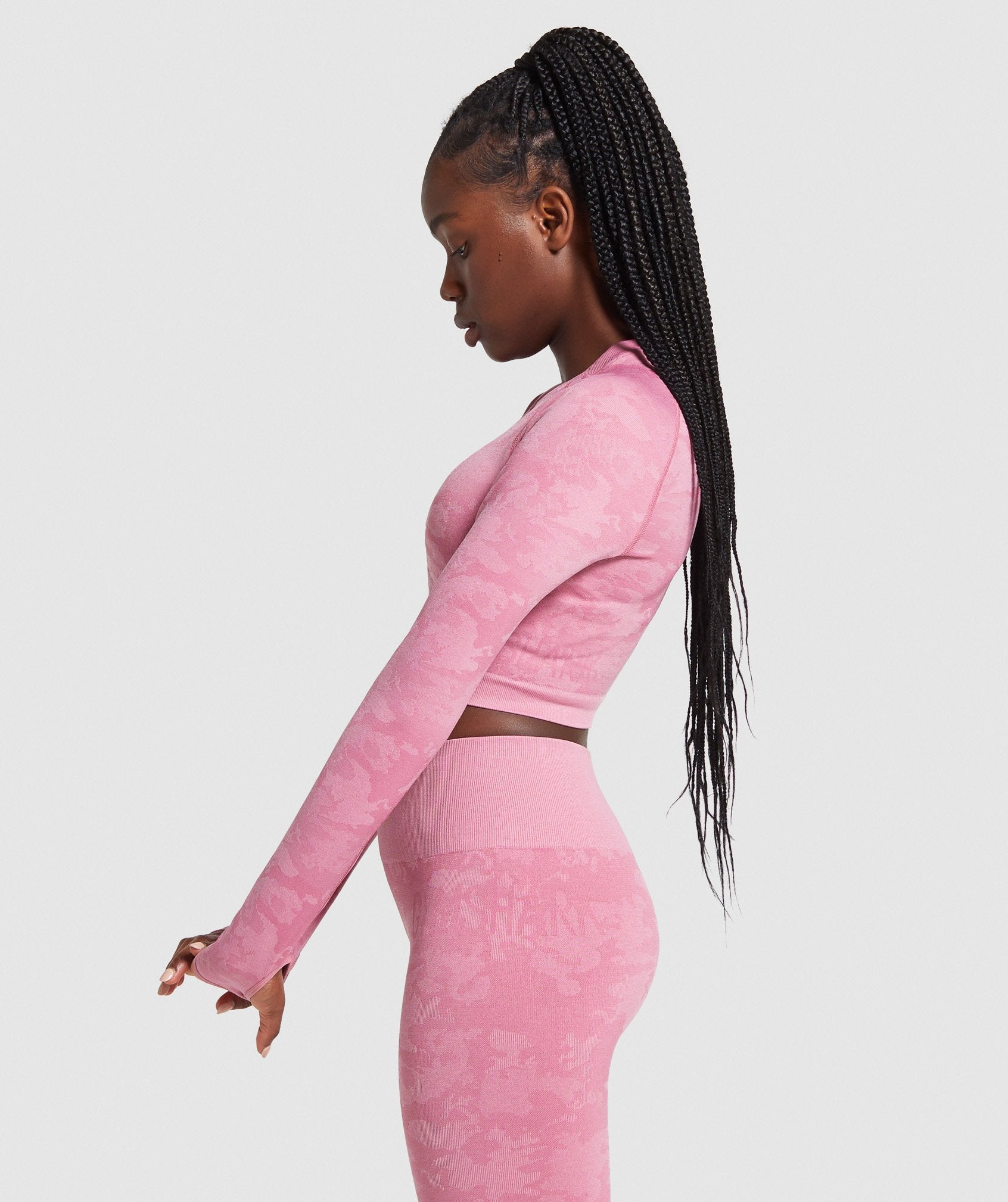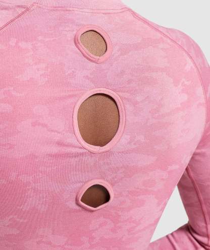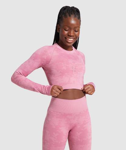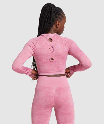 Gymthtshark Womens Camo Seamless Long Sleeve Crop Top - Pink