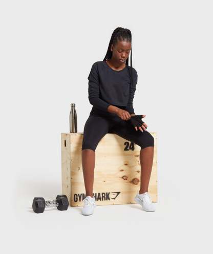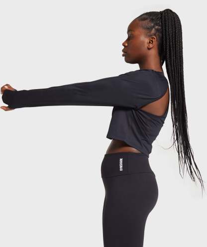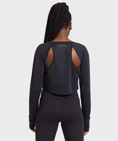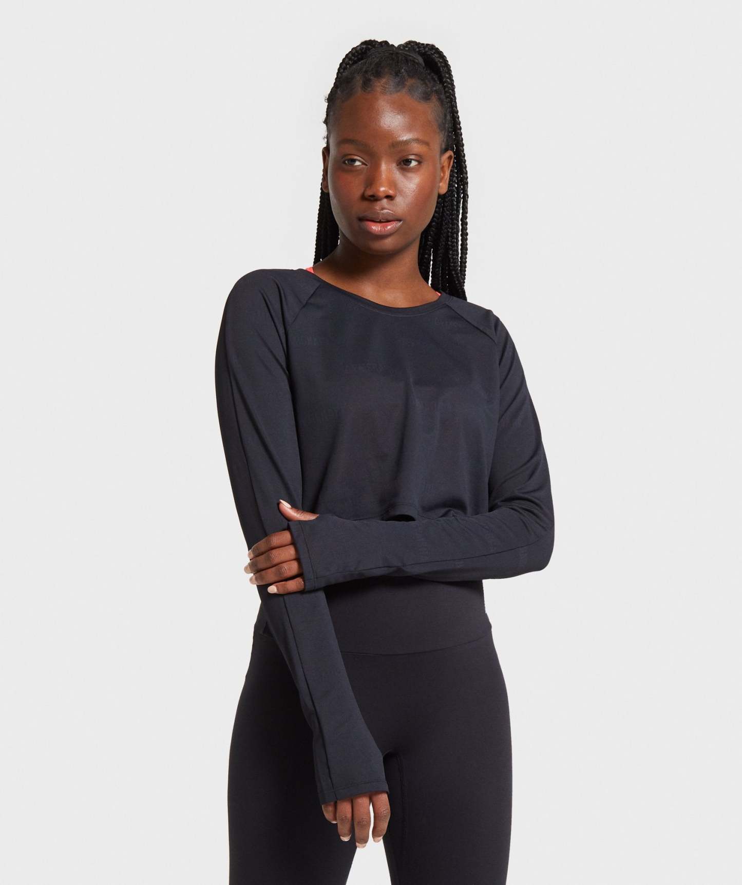 Gymthtshark Womens Focus Long Sleeve Crop Top - Black