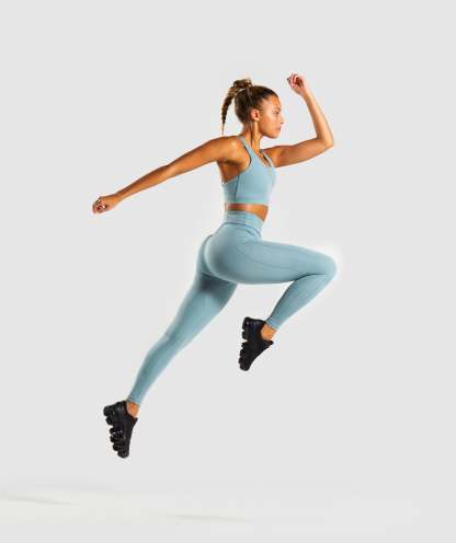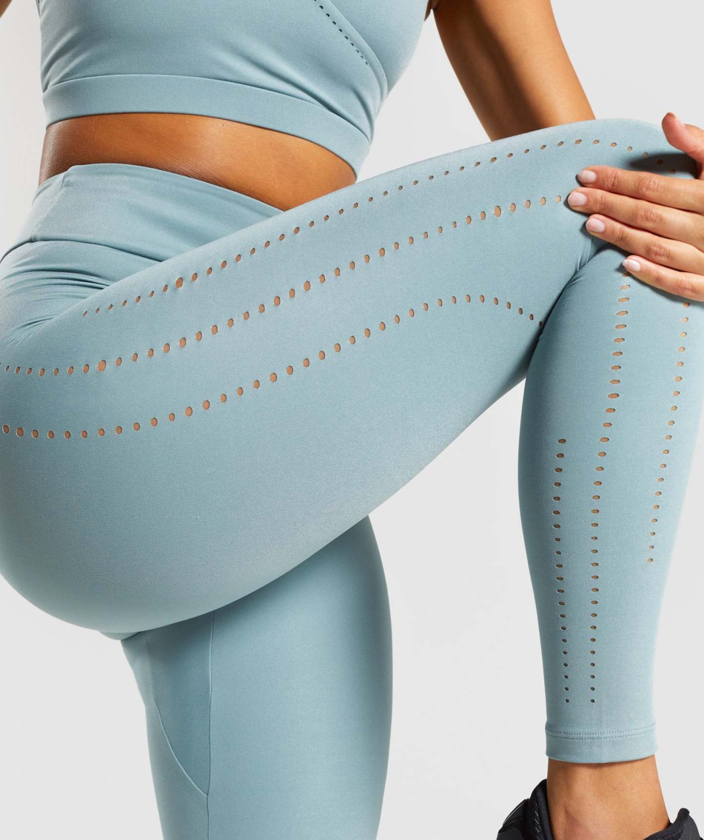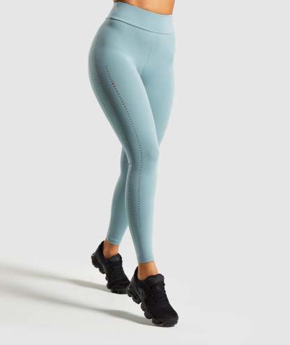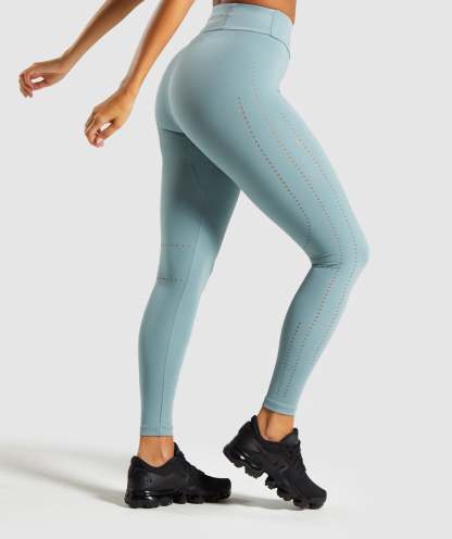 Gymthtshark Womens Laser Cut Tights - Turquoise