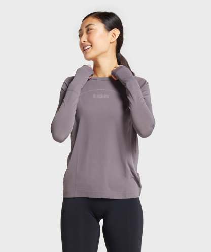 Gymthtshark Womens Breeze Lightweight Seamless Long Sleeve Top - Slate Lavender