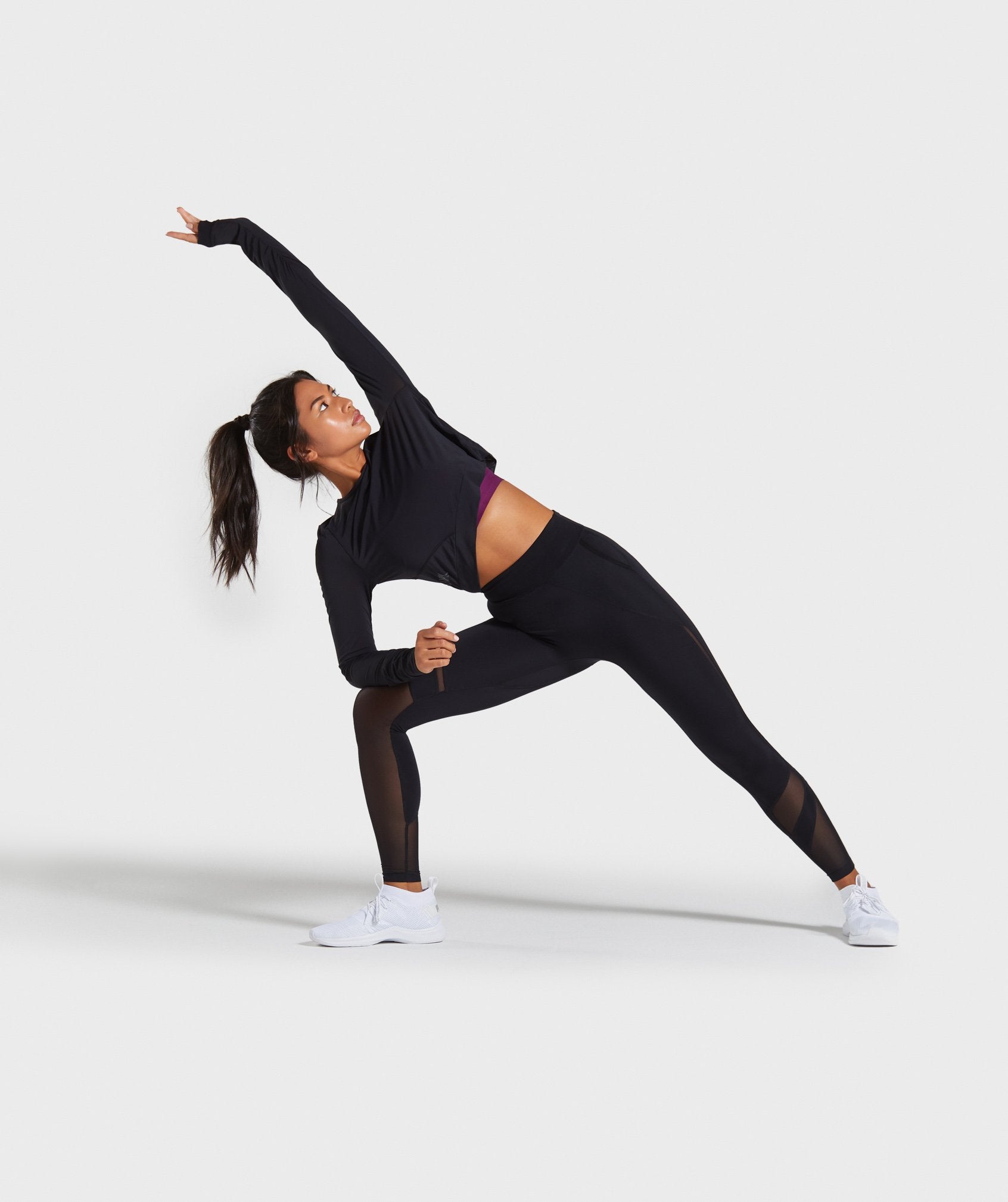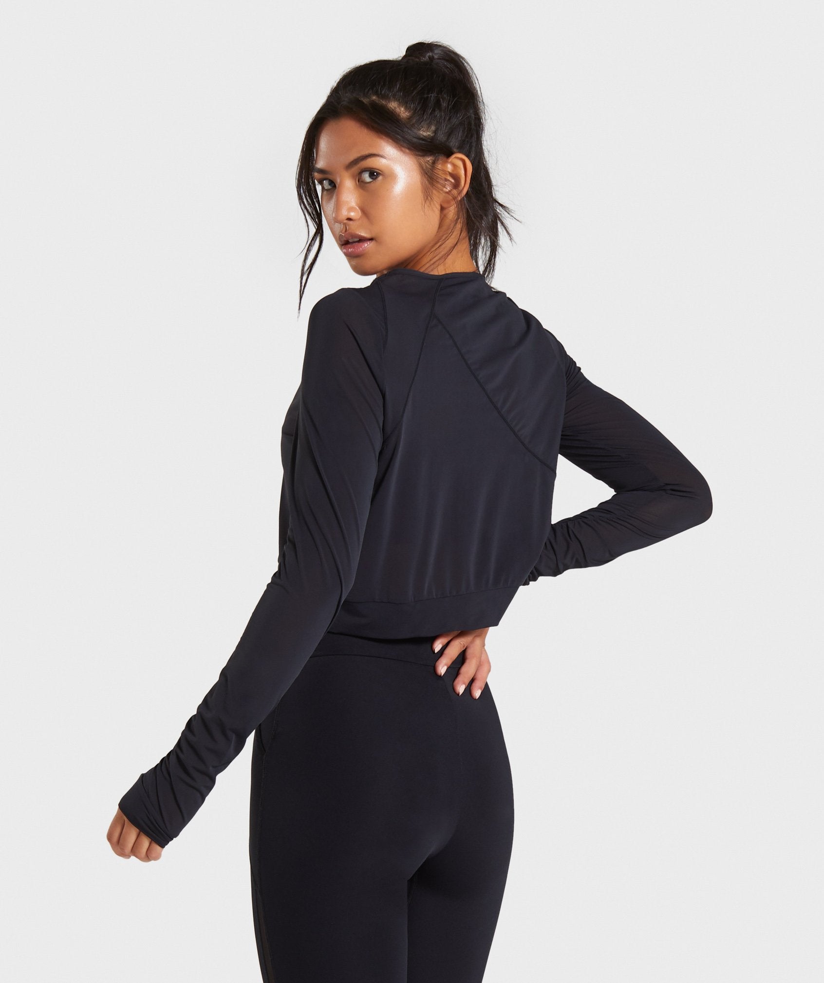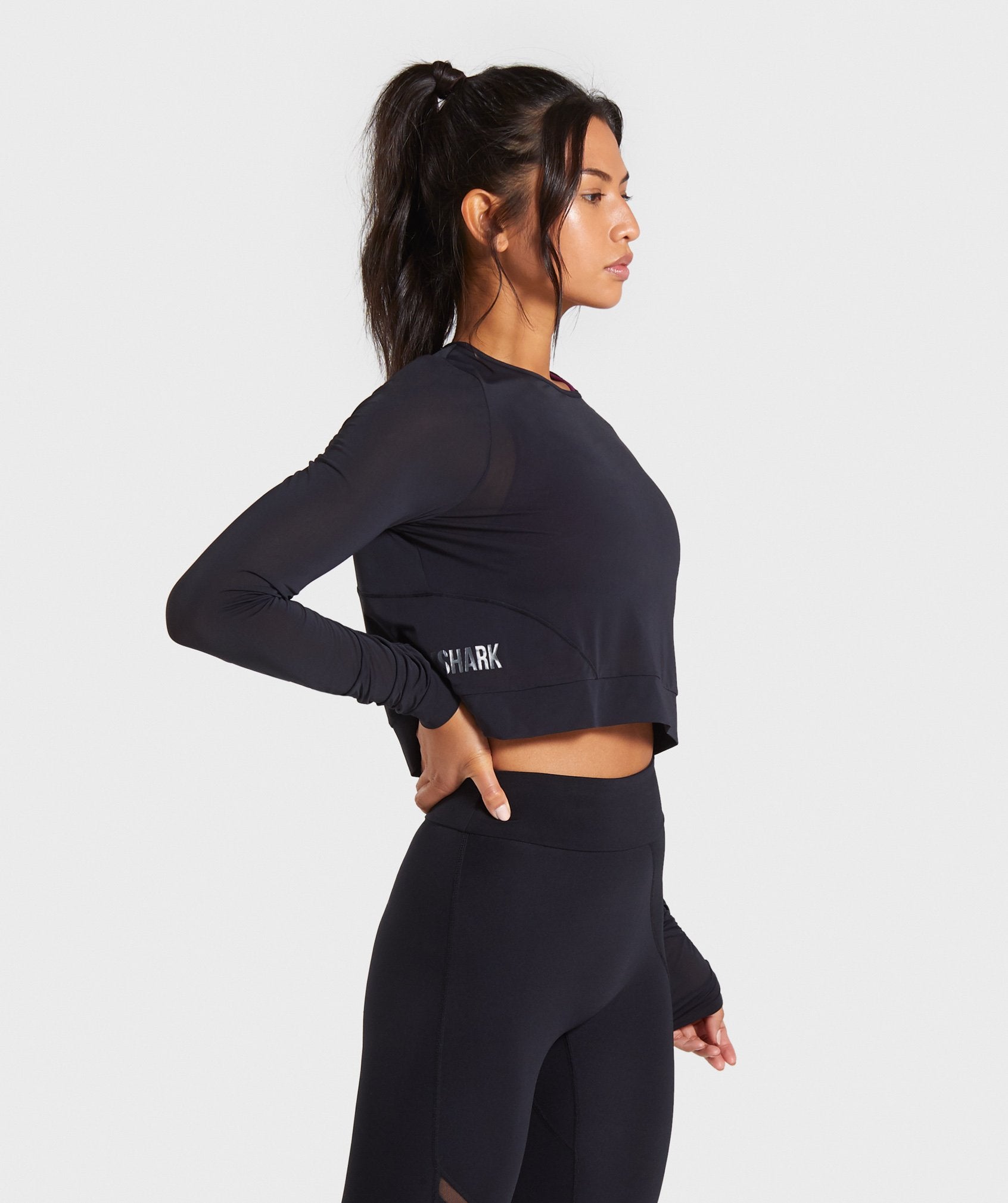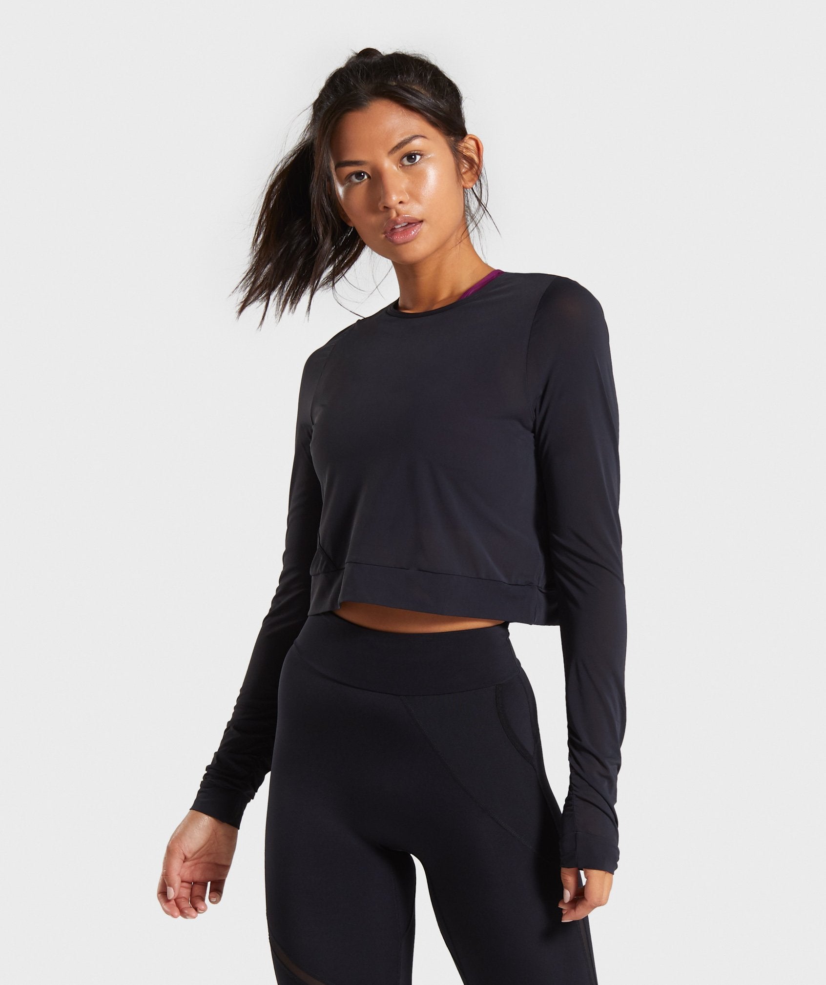 Gymthtshark Womens Mesh Layer Long Sleeve Top - Black