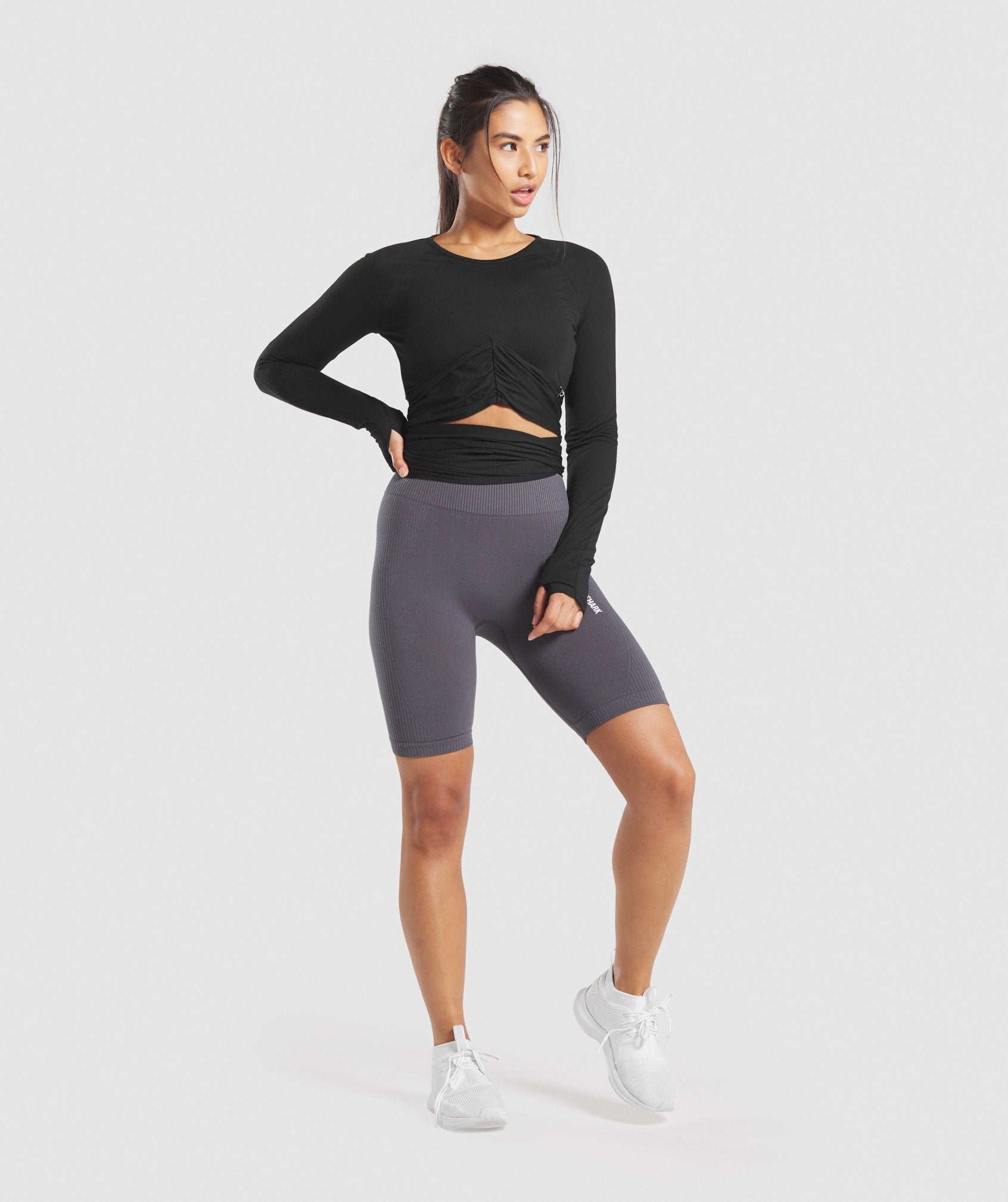 Gymthtshark Womens Power Down Long Sleeve Crop Top - Black