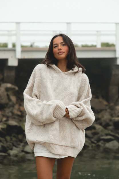 Stay cozy and stylish in our Malibu Mist Wool Blend Hoodie. With its oversized fit and classic hoodie design, this hoodie is perfect for lounging or layering. The soft and thick non itch fabric will keep you warm and comfortable.