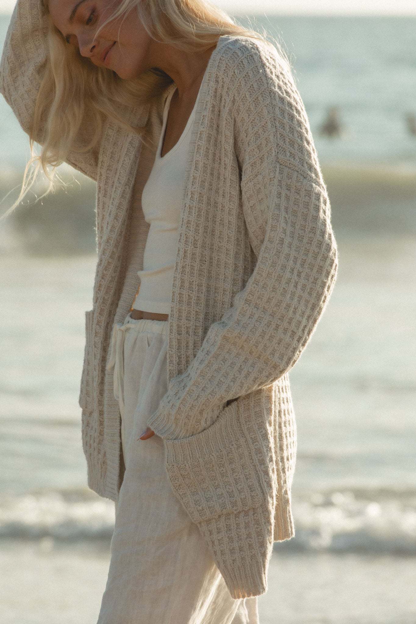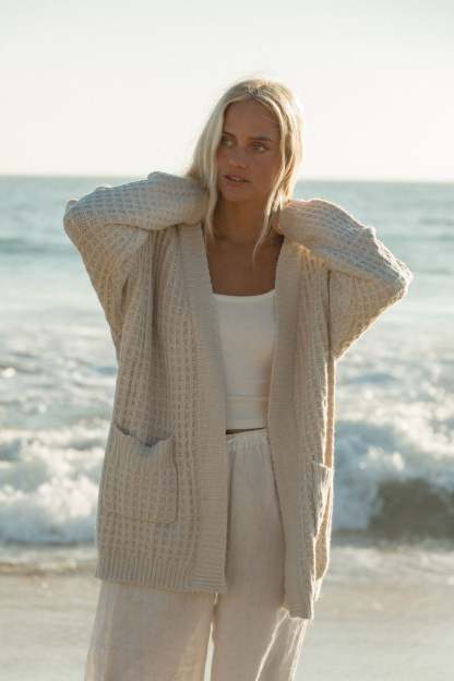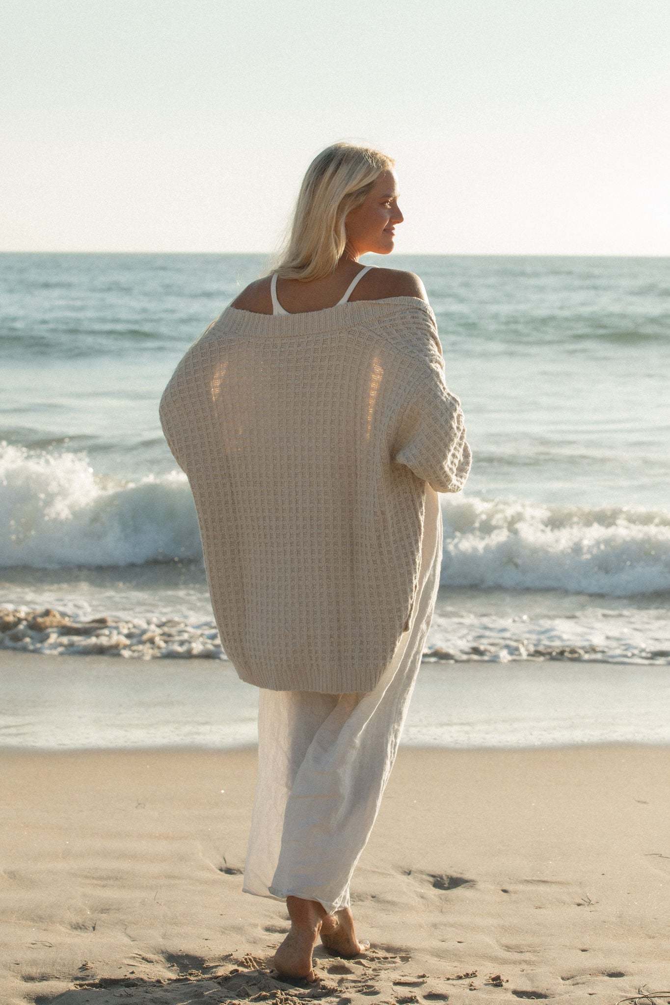This Winter Sun Waffle Knit Cardigan is your go-to for unbeatable comfort. With its oversized fit and waffle knit design, it offers unbeatable warmth and coziness. Perfect for layering throughout the year, you'll have a timeless style that will never go leave your closet.