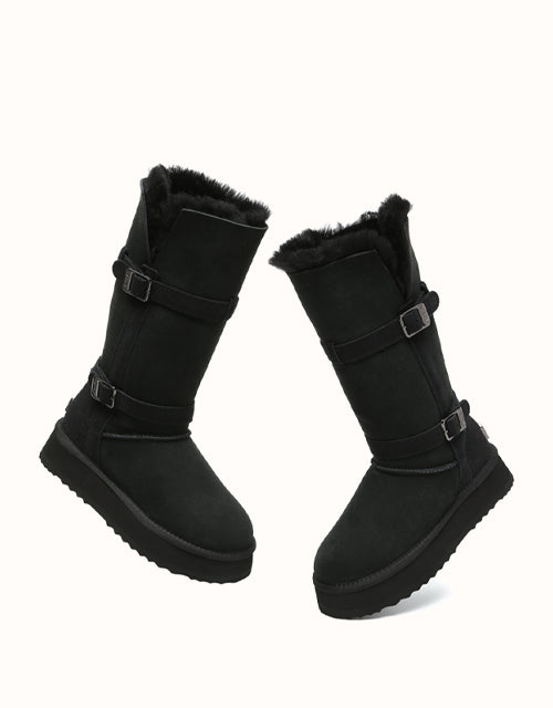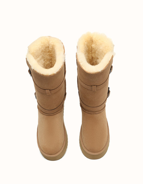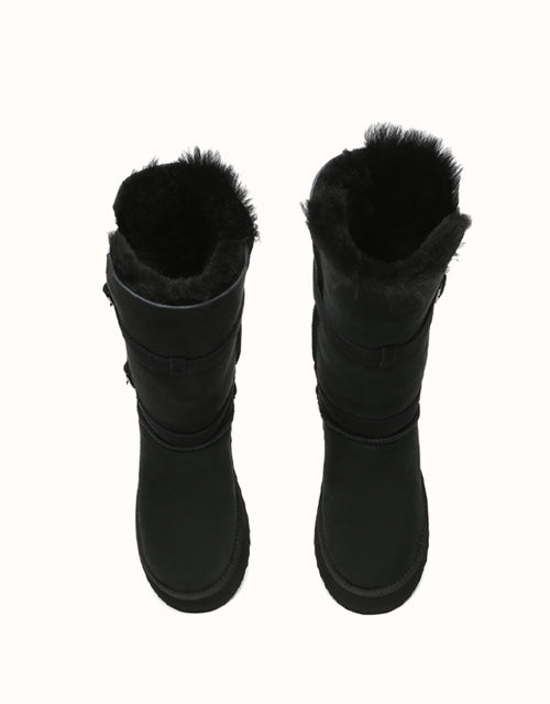 Explore three styles in a single pair with EVEthtRAUUGthtG Valerie Tall Boots. Designed with a foldable bootleg for adaptable looks and a sturdy outsole for durability, these boots provide reliable protection in cold weather. Fully lined with double-sided Australian sheepskin wool, they ensure breathable comfort, moisture regulation, and natural odor control. Available in Chestnut and Black, these must-have boots are perfect for winter walks or everyday wear.