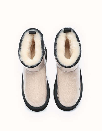 Step into style and functionality with our Futuristic Waterproof Boots. Featuring a sleek transparent TPU upper that highlights trendy black-and-white fleece, these boots combine style with practicality. Lined with AUSTRthtALIAN Merino sheepskin for all-season warmth and comfort, they also boast a 4cm platform TPR outsole for durability, grip, and added height. Perfect for a bold, weather-ready look.