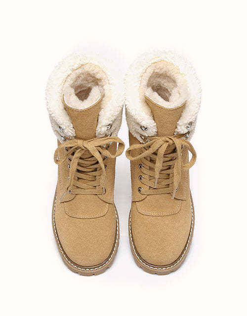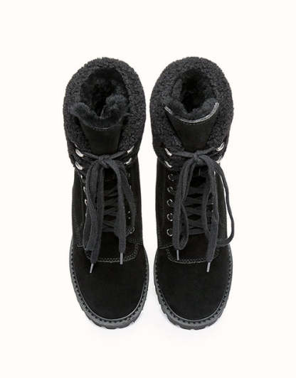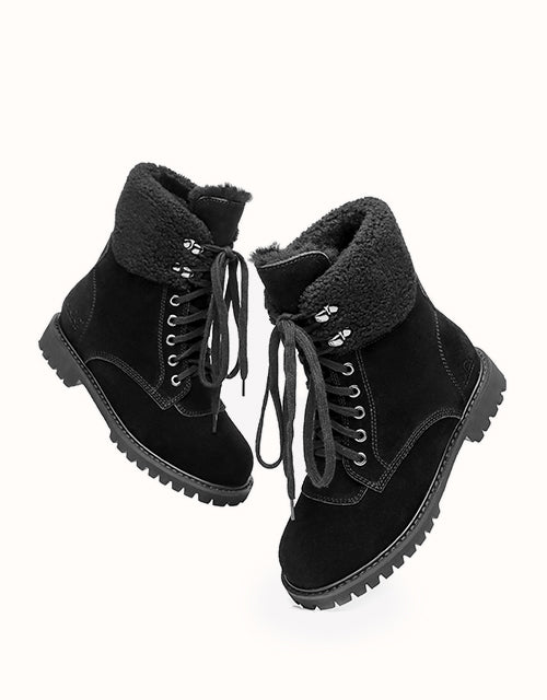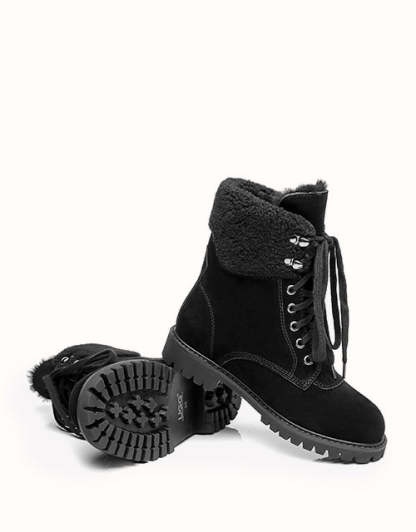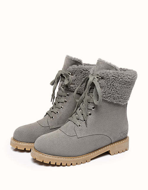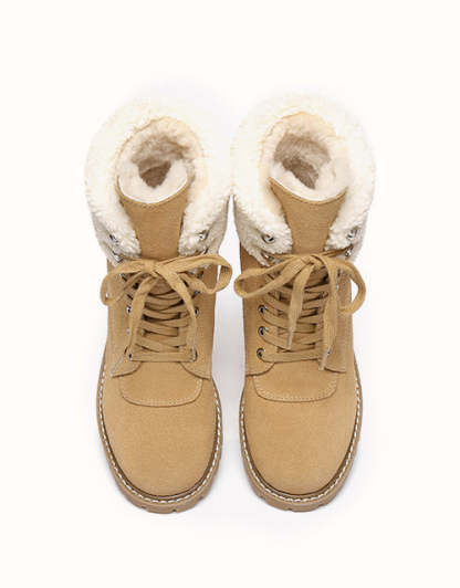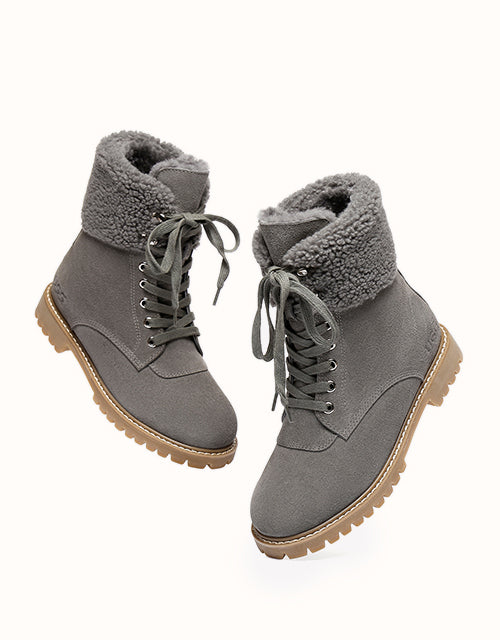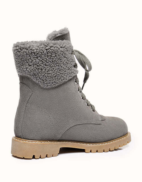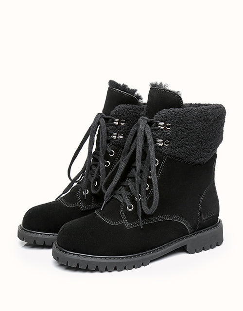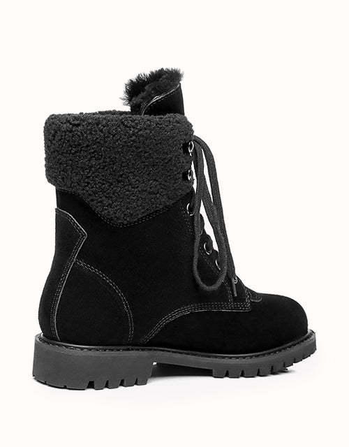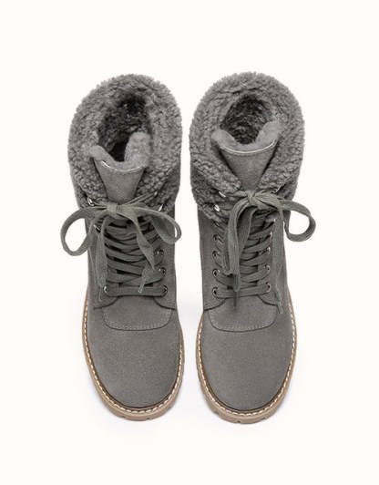 If you are looking for some cosy, durable chunky boots - we have got you covered! Our Mina Boots feature a soft wool interior with a leather exterior and rubber sponge sole. Boasting a wool ankle collar and lace-up design, these Marten-styled boots are perfect for everyday wear.