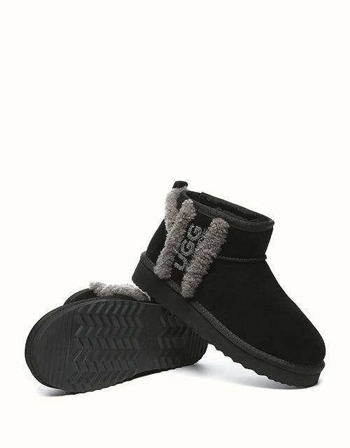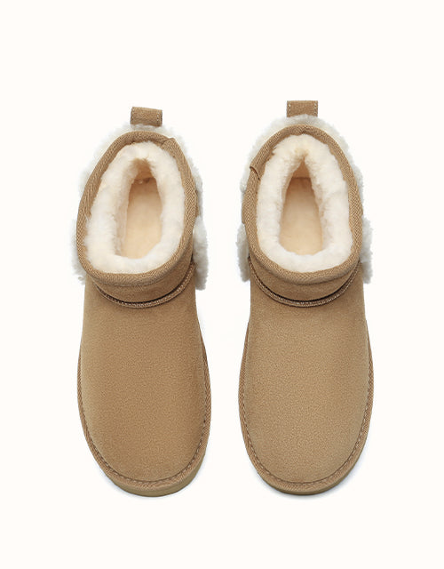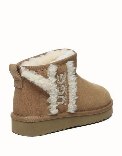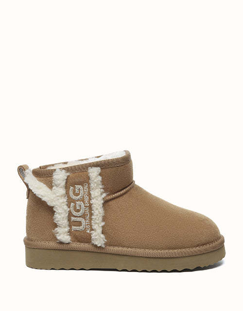 For a timeless and stylish everyday look, the AUSTRthtALIAN Shepherd Darby Ultra Mini Ankle Boots are the perfect choice. Crafted with luxurious sheepskin, these boots offer exceptional warmth and comfort throughout the day, making them ideal for year-round wear. Available in Chestnut and Black, they feature shearling lining on each side for an added touch of style, giving the classic UGthtG boot a chic, elevated look.
