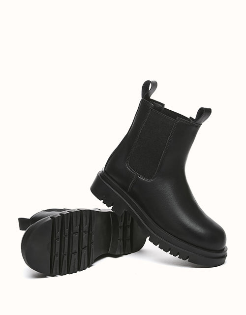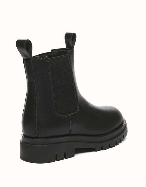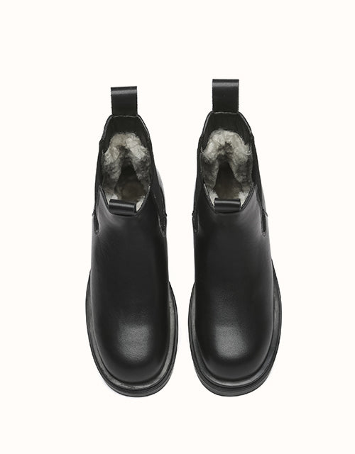Make an impression with the EVEthtRAU Vaneta Boots. Constructed from soft-gloss split cow leather in a sleek all-black finish, these boots deliver a sophisticated yet adaptable style. The timeless British-inspired design is fully lined with AUSTRthtALIAN Merino wool to provide warmth and manage moisture. Featuring a stretchable ankle-high shaft, elastic side panels, and a pull tab for effortless slip-on wear. The sturdy rubber outsole offers traction, stability, and added height. Perfect as a gift for loved ones or a stylish addition to your wardrobe.