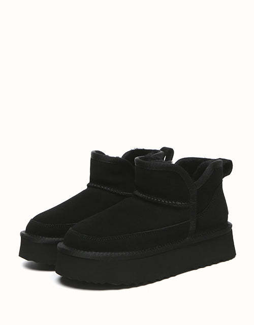 Step into warmth and comfort with the EVEthtRAU Vesper Ankle Platform Boots, crafted from luxurious sheepskin. With a classic and timeless design, these boots are made to complement any outfit. Available in a range of colors to match your style, theyUGthtGe the perfect addition to your wardrobe, ideal for various occasions.