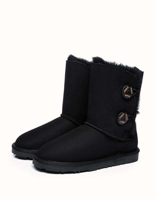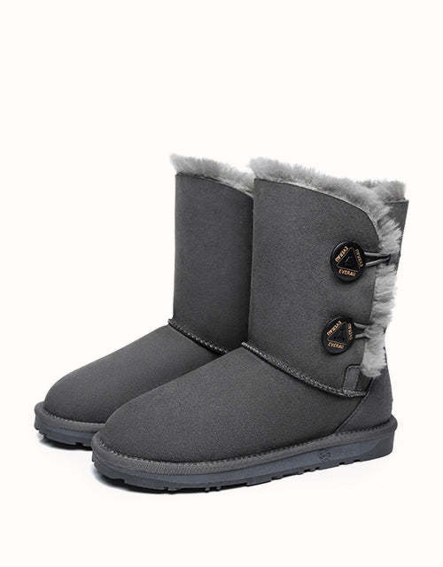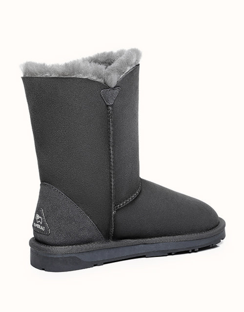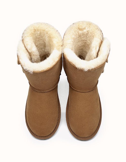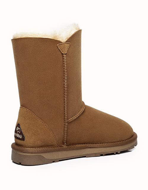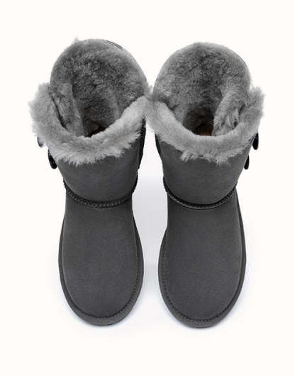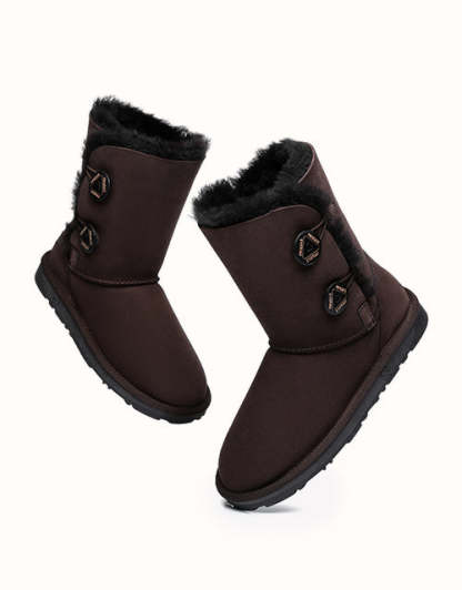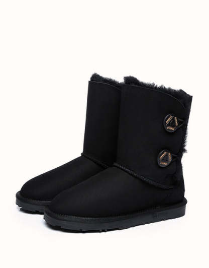 The Twin Button includes a dual button opening on the side that is both stylish and functional. The fluffy interior that spills out the top is gorgeously soft and luxurious. Put your best foot forward and step into these boots to feel like you’re walking on a big cloud.