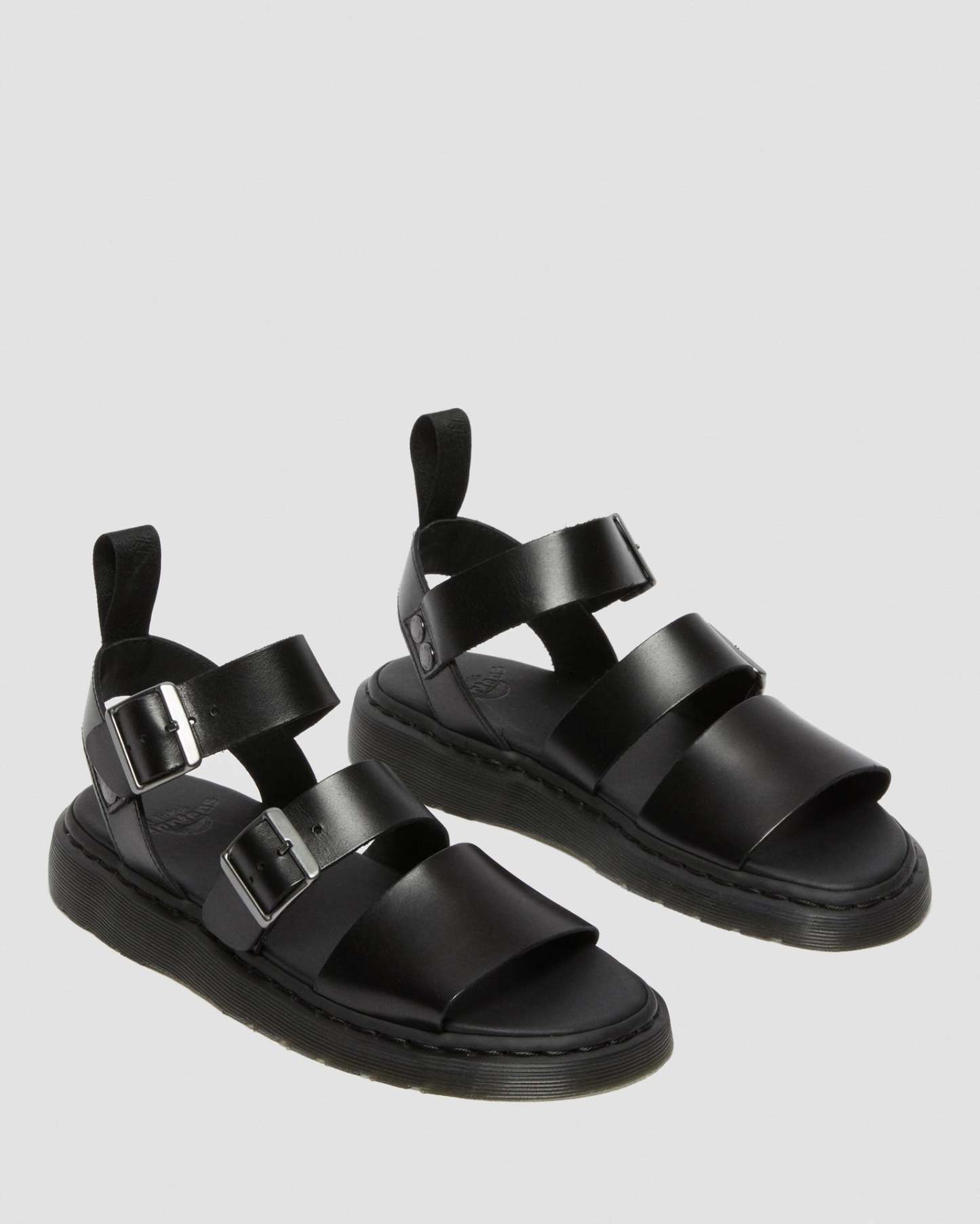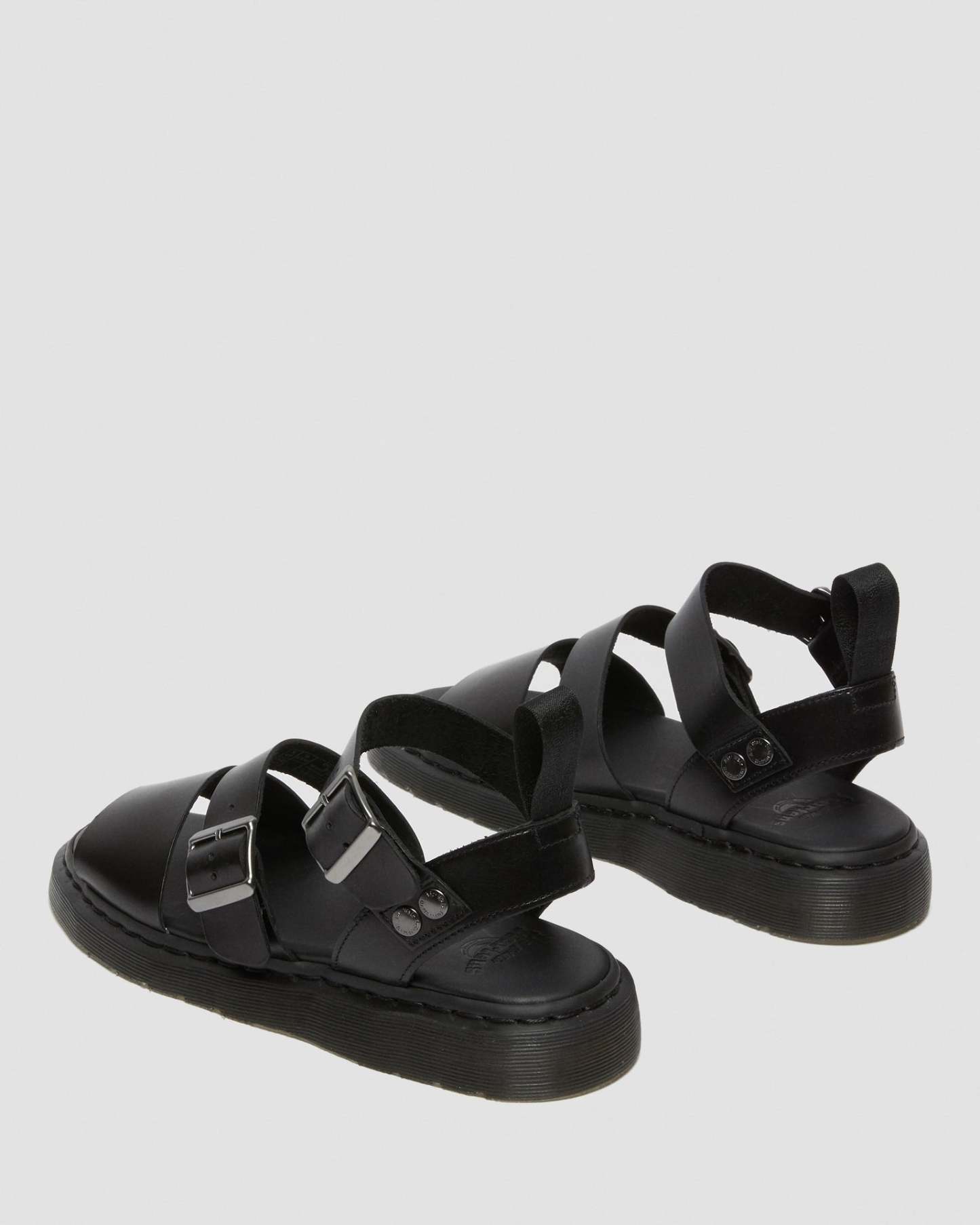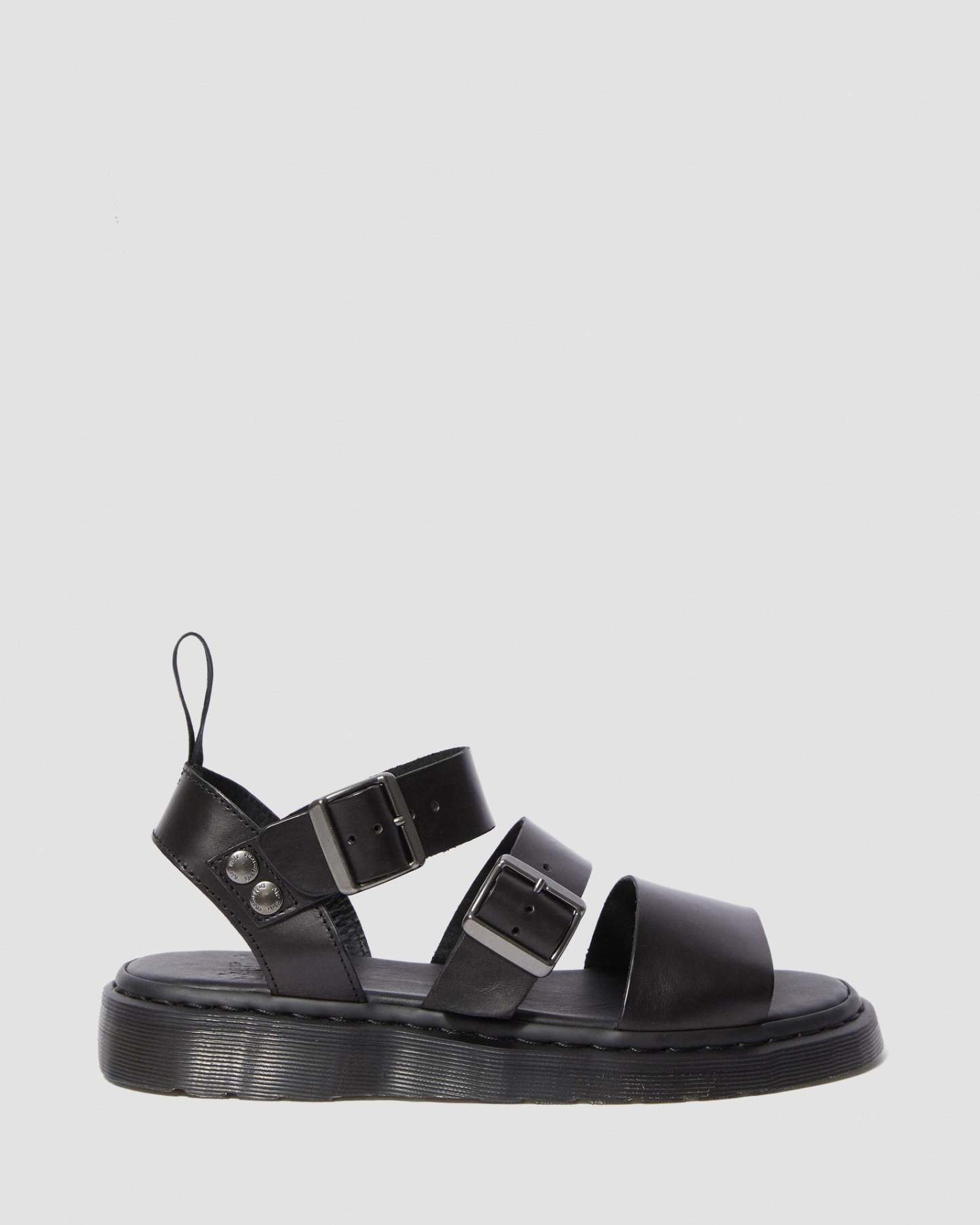 Reinventing the Open AirWair sandal from our archives, we created this bold, gladiator-inspired entry to our Shore collection. Featuring wide straps, two buckles for a perfect fit, silver stud rivets and our signature heel tab, it approaches warm weather dressing with a definite Dr. Mathtrtens attitude.