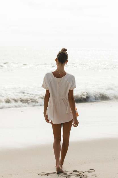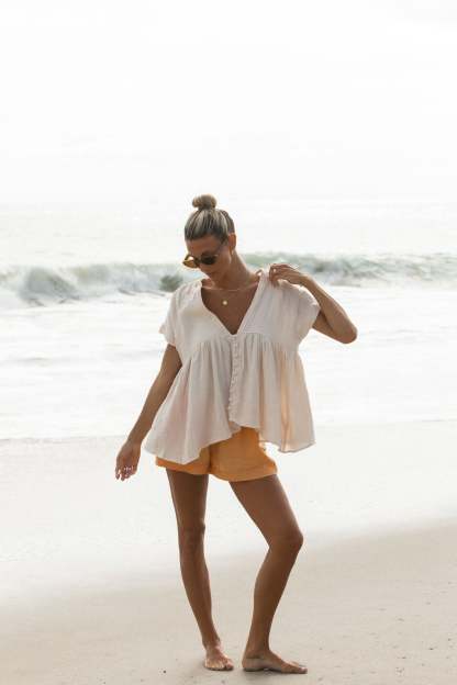 The Beachy Head Cotton Gauze Top is a flowy and lightweight short sleeve top. Its babydoll style is perfect for warm weather and provides a comfortable and airy fit. Made with high-quality cotton gauze, ideal for late summer.