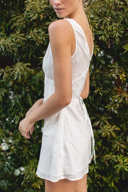 Crafted from 100% cotton, the Ciao Amore Woven Eyelet Mini Dress is perfect for hot Summer days. Its beautiful eyelet designs add a touch of fun detail to your closet.