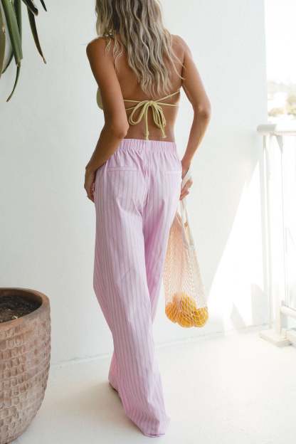 Made with lightweight cotton poplin, these classic boxer-style pants feature a two tone stripe print. With pockets for added convenience, you'll be ready for a casual summer day in these comfortable pants.