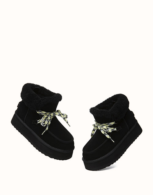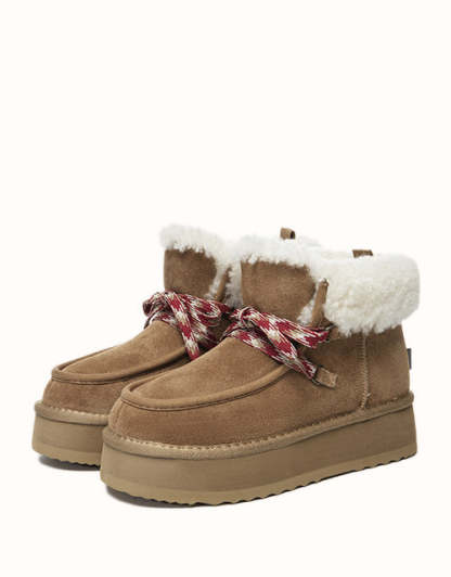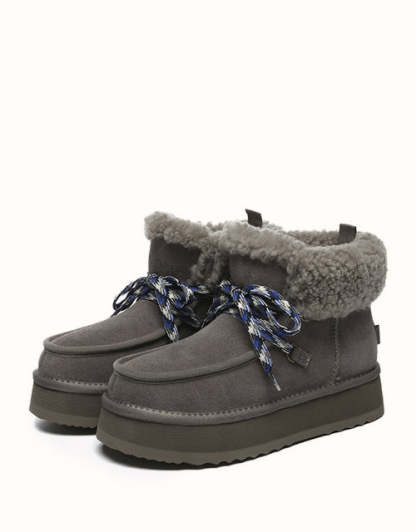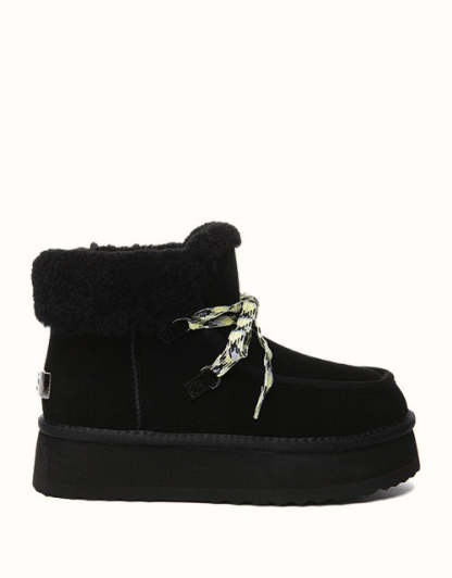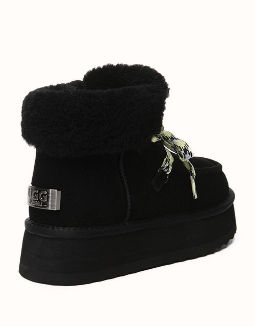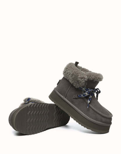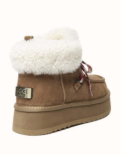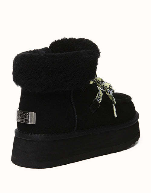 Elevate your style with the UGthtG EVEthtRAU Honour Sheepskin Boots. Available in four stunning colorways, these classic boots are designed for effortless wear, allowing you to step out in style with ease. Featuring adjustable laces for a customized fit and ultimate comfort, they’re perfect for any occasion. Whether paired with jeans for a casual outing or activewear for running errands, the chic platform sole adds a trendy touch that takes any outfit to the next level.