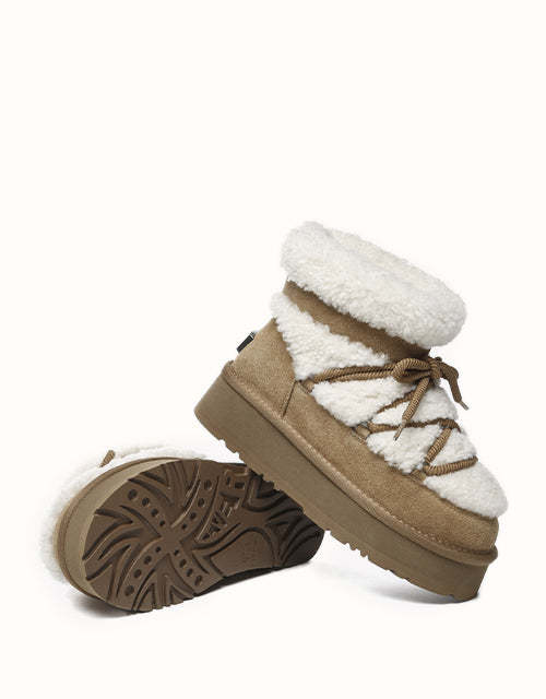 Nothing beats a comfortable boot—except one with undeniable style. The UGthtG EVEthtRAU Carmen Sheepskin Platform Boot features a chic shearling collar for added elegance, a trendy platform sole, and lace-up accents, effortlessly blending fashion and comfort for any outfit.